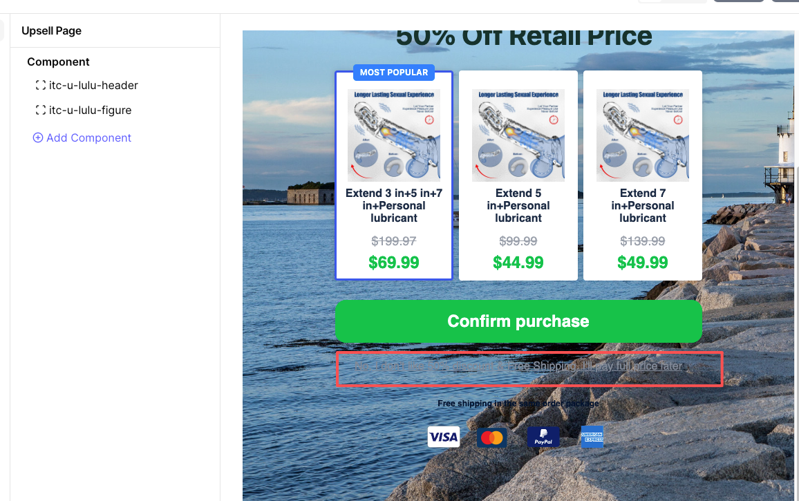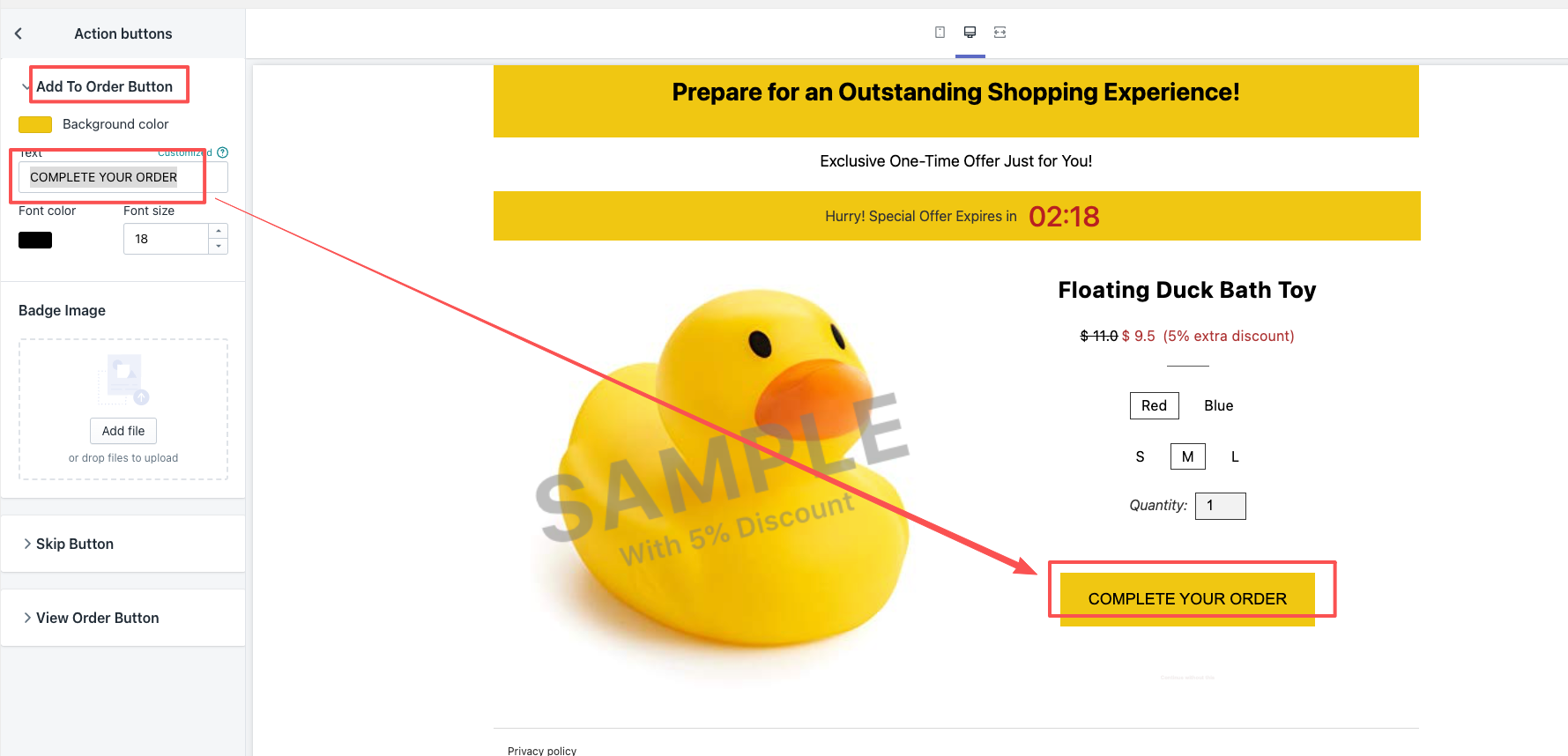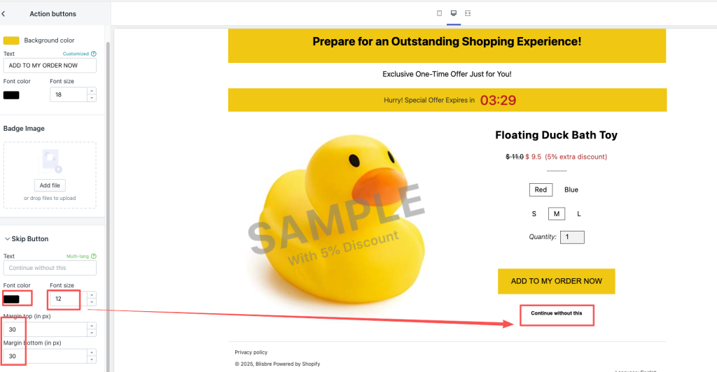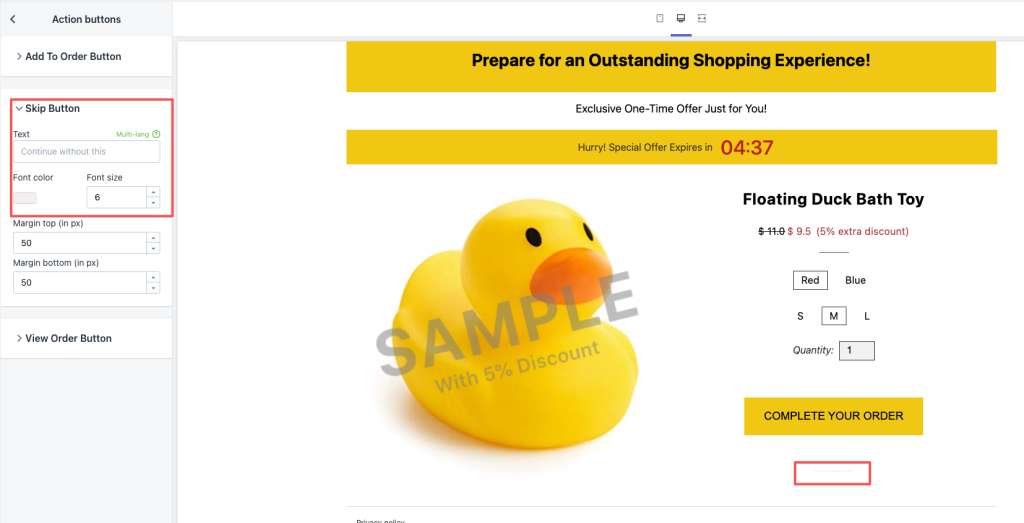 2.把跳过UPSELL 按钮修改为 明显可见