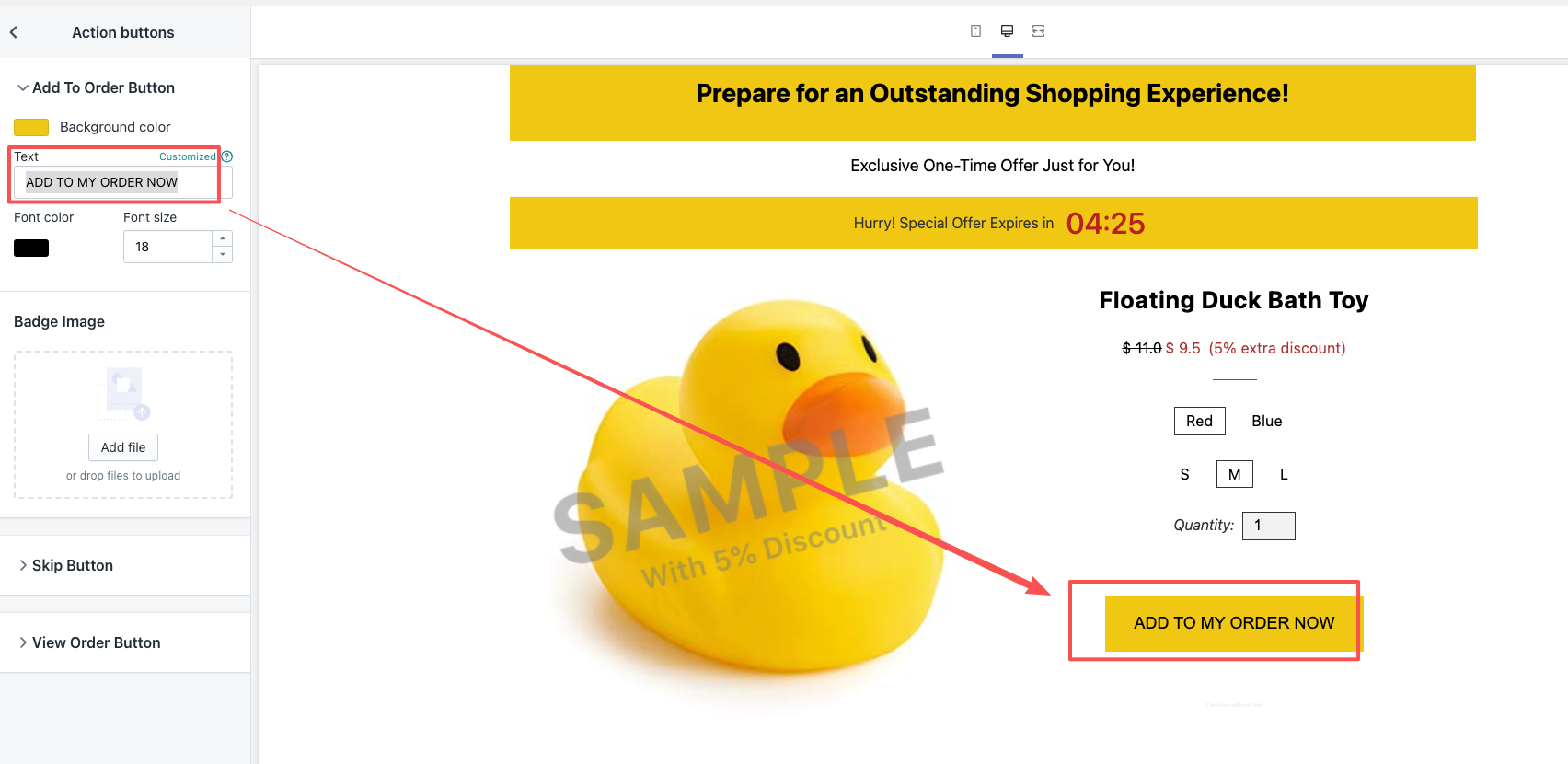 2. 修改按钮文字为 ADD TO MY ORDER NOW