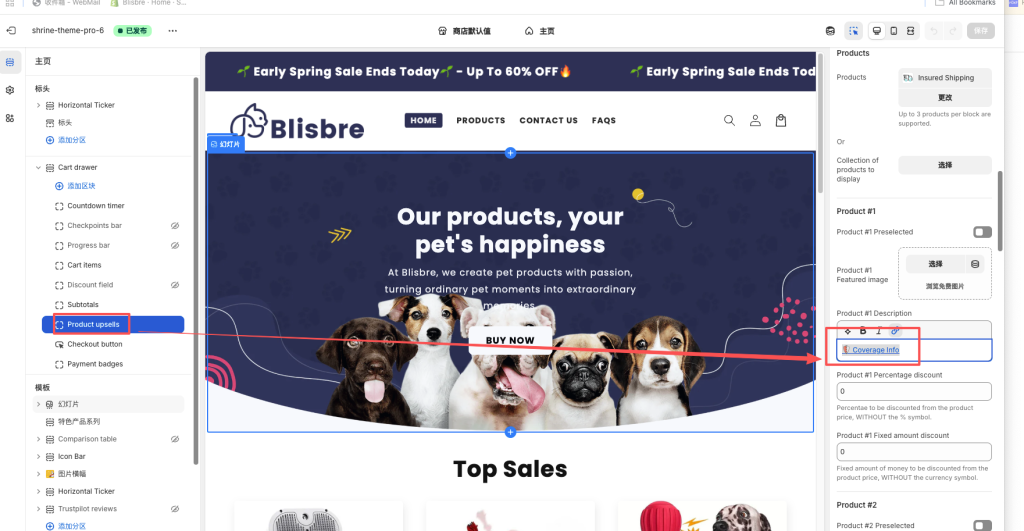 二,编辑模板 给运费险加上可点击的按钮,让客户可以点击看到保障内容